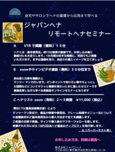 *ヘナリスト zoom(有料)2~3時間 ¥11,000(税込)