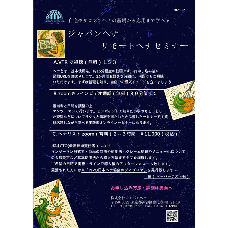 2026年JAPANHENNAオンライン「ヘナ講習」のご案内
